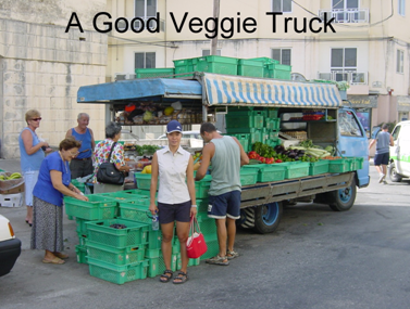 The same unfortunately can be said for the little veggie man. Malta, for some reason or another, doesn’t have many shops and the people buy their fresh produce from trucks that open up and park all around the neighborhoods. This truck came to the marina and he only talked, again, to the yachts that had just arrived. Our first day Ariel bought some fruit that was overpriced and of poor quality. She was so mad that she wanted me to take this guy’s picture and put it on the website! We don’t do that but would warn others to be aware of this shyster.